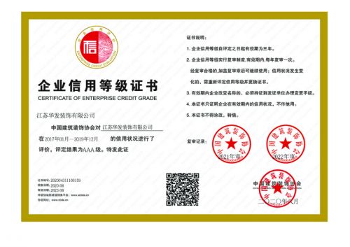 中裝協(xié)企業(yè)信用等級(jí)證書